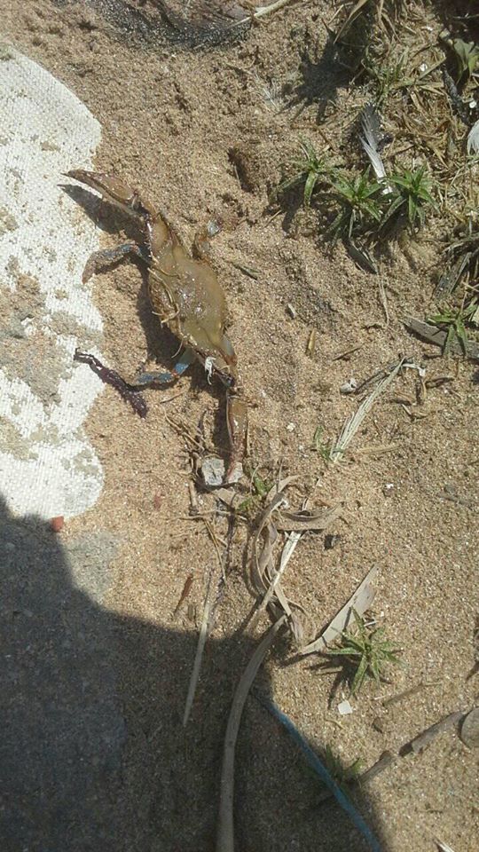 Jeg fikk kun ei krabbe som jeg tok bildebevis av. Fikk også en type fisk jeg ikke har sett før. Det finnes så mange fisker i forskjellige farger i havet her så det er ikke første gangen det skjer. Den var såpass liten så var ingen matfisk uansett. De andre fikk ikke noe særlig heller. Når det begynte å mørkne og kona endelig våknet var det på tide å dra hjem. Får håpe det blir noe mer fisk neste gang vi prøver fiskelykken.