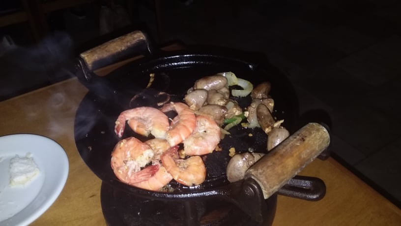 Etter at beina begynte å verke pga mye gåing dro jeg og kona tilbake på hotellet for å slappe av litt. Jeg er også litt sliten etter dagen i forveien med altfor mye bilkjøring. Da vi gikk ut igjen senere på kvelden tok vi kveldsmaten på Restauranten Petiscaria Imperial og bestilte Rodizio de Petisco . Det er en matrett der du kan spise hvor mye du vil av forskjellige matretter som servitører kommer med fortløpende, og du tar til deg hva du vil av havmat, kjøtt , pasta og pizzaretter. Det kom fritert lula, bacalhau og brasiliansk gatekjøkkenmat. Ettersom du kan spise for hvor mye du vil overspiste jeg meg, som sikkert mange andre gjorde rundt meg også, og jeg våknet senere på natten med magetrøbbel. Regninga kom på 178 real for 2 personer, men var helt klart vært det.