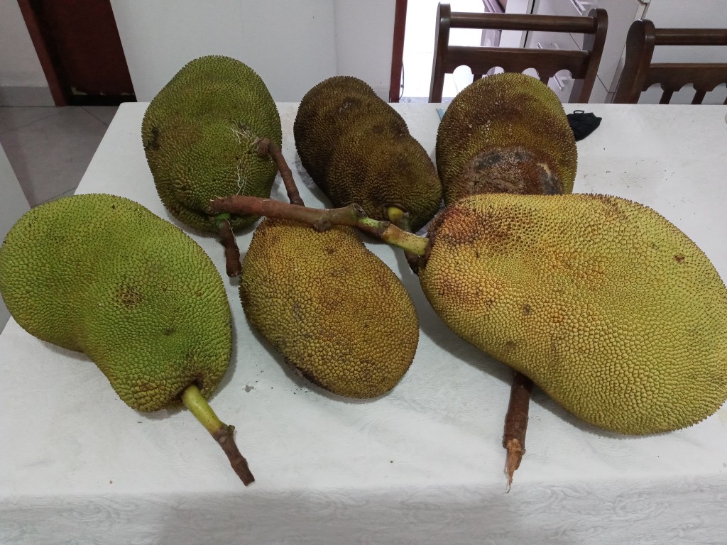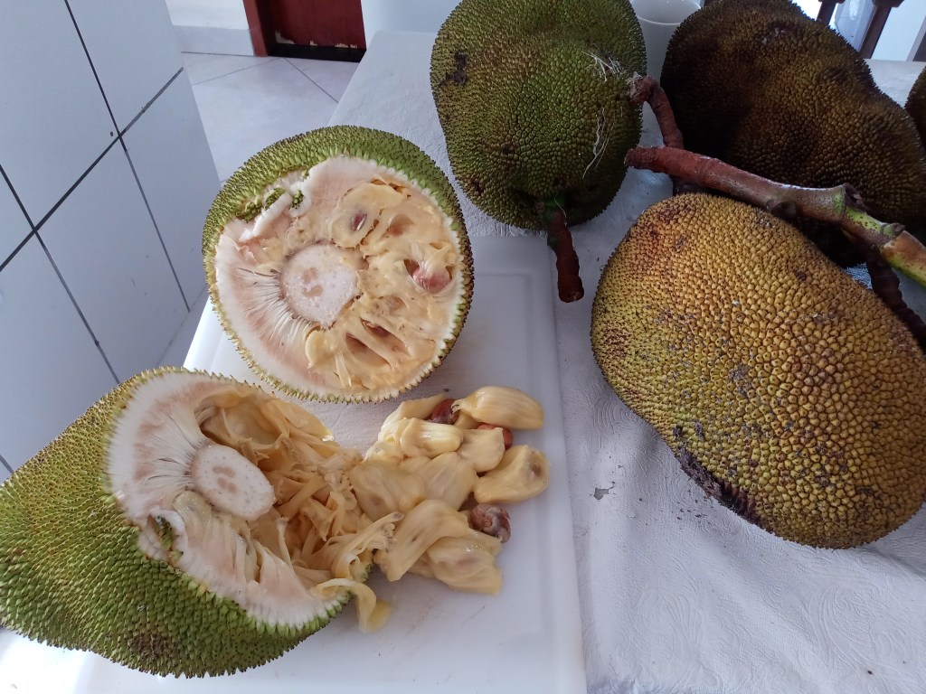 Jeg har også vært og hentet meg flere Jaca frukt. Denne gangen kjørte jeg bilen helt inntil trærne og plukket med meg en hel haug. Jeg skrev en artikkel om frukten for en stund tilbake. Dere kan lese mer om den her : https://brasilbloggen.com/2020/12/21/den-brasilianske-landsbygda/