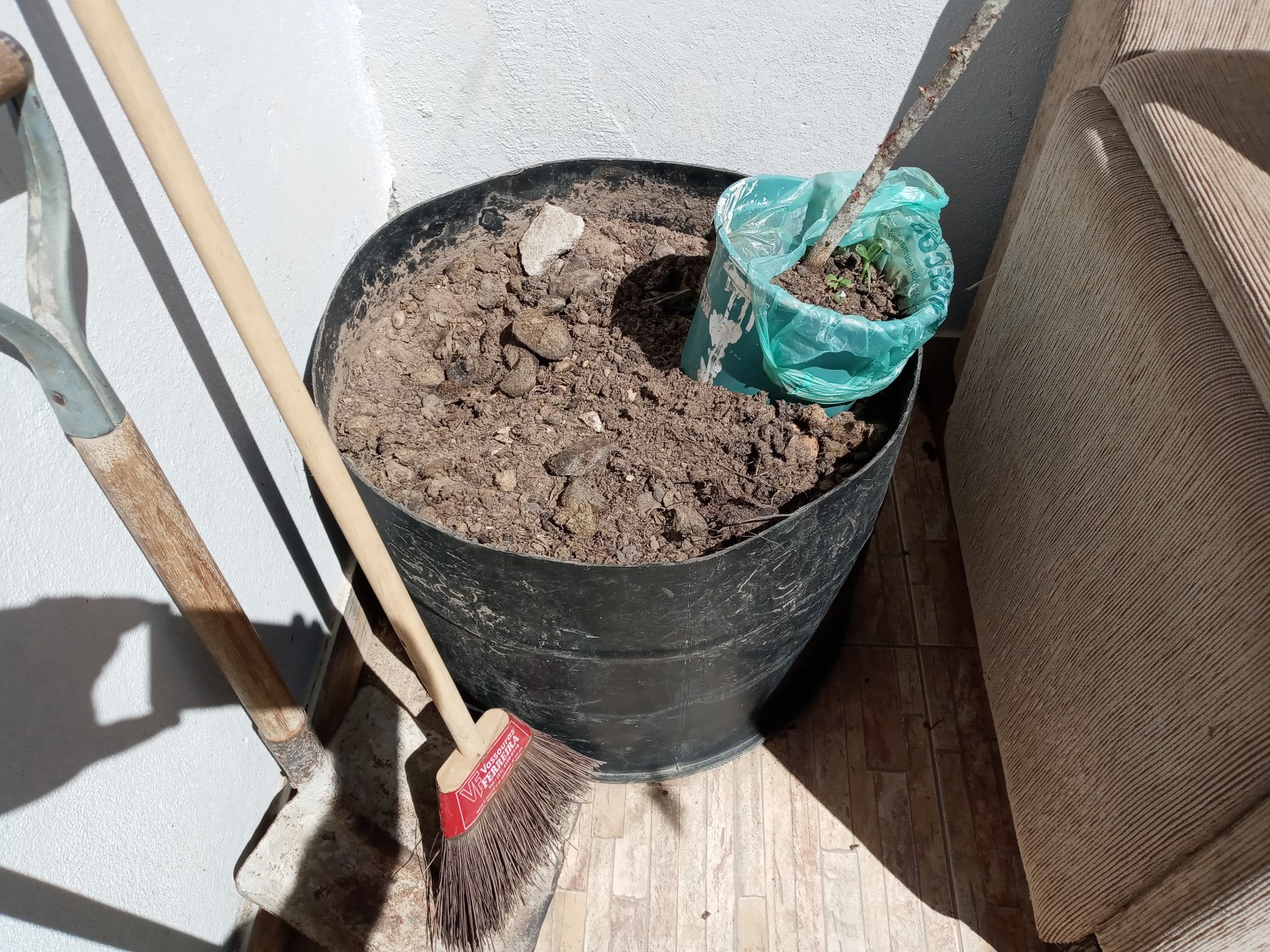 Jeg skrev et innlegg for en stund siden om en kompostbinge jeg har utenfor huset mitt. Den har jeg allerede tømt siden sist og jeg har fylt den opp enda en gang på forholdsvis kort tid. Jeg har tatt mye hestemøkk fra gata ettersom mange har hester her, og jeg har hatt utrolig mye bananskall og andre matrester oppi der. Ettersom jeg kun har spist frukt i det siste sammen med mange andre som har kommet på besøk, og alt har blitt tømt oppi den svarte dunken, har den fylt seg opp på en veldig kort tidsperiode. Den forrige som hadde ligget der en stund har jeg allerede brukt rundt banantrærne mine i hagen. Siden sist har det siste treet også gikk frukter. Trærne vokser jo i klynger og til nå har jeg 3 klynger med banantrær og alle gir faktisk fra seg bananer. Jeg gjorde nok noe riktig med den første jorda som tydeligvis har gitt mye næring til trærne i hagen.