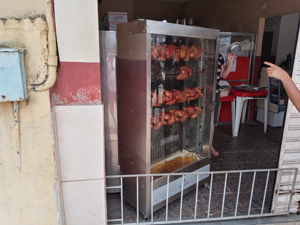 Etter all jobbinga måtte det mat til. Frango assado, helstekt kylling er grei mat etter en dugnadsånd. Kylling med tilbehør som var nok til 6 personer kom på ca 150kr, med ei stor brusflaske. Som nevnt er det billig her. Jeg fikk streng beskjed av eieren av stedet at hun ikke skulle være med på bilde. Hun likte ikke sosiale medier og å bli tatt bilde av. Jeg synes det var rart. Det var ei flott dame. Hyggelig var hun også.