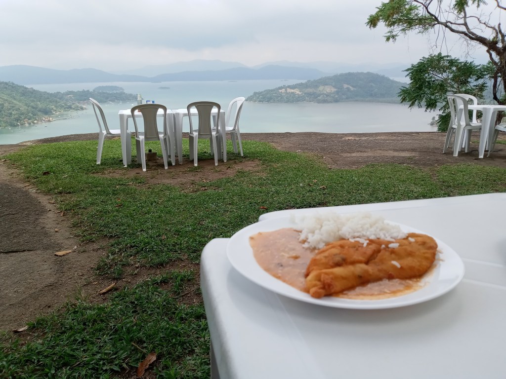 Vi fikk en veldig god start på morgenen både jeg og kona den første dagen i Paraty. Vi sovnet tidlig dagen før og begge våknet uthvilte og eventyrlystne. Vi stakk ut av gjestgiveriet og gikk hele veien til sentrum opplagte og med mye energi. Gjestgiveriet vi overnatter på ligger ikke mer en 4km unna bykjernen, men det er fortsatt et godt stykke for en latsabb på 100kg som liker seg best i sofakroken, så sant jeg ikke er på reisefot vel og merke. Vi fikk noen reisetips fra noen tilfeldige folk vi møtte som mente vi måtte stikke til en flott restaurant litt vekke fra byen med en fabelaktig utsikt. Vi tok en uber og dro dit og vi ble ikke skuffet.