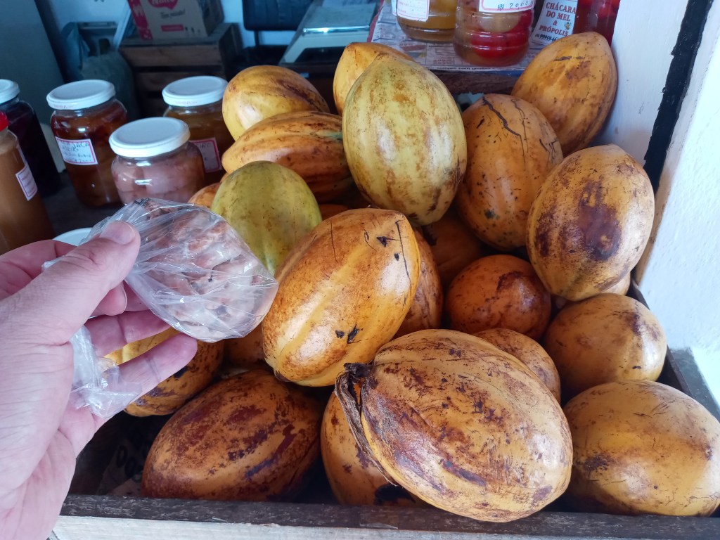 Synes fjærkre er så gøye skapninger og hvis jeg noen gang skaffer meg et lite småbruk nedi her i Brasil er det de første dyrene jeg skal skaffe meg. Det er en liten drøm jeg har hatt lenge, selv om det finnes litt for mange giftige slanger og krypdyr på landsbygda. Jeg kjøpte og spiste kakaofrukt for første gang som de også solgte inne på stedet. Jeg visste ikke at kakao opprinnelig var frukt som vokser på trær, og jeg trodde ikke på fyren som solgte meg frukten før jeg slo det opp på wikipedia. Med tanke på hvor godt kakao smaker smakte kakaofrukten det motsatte.