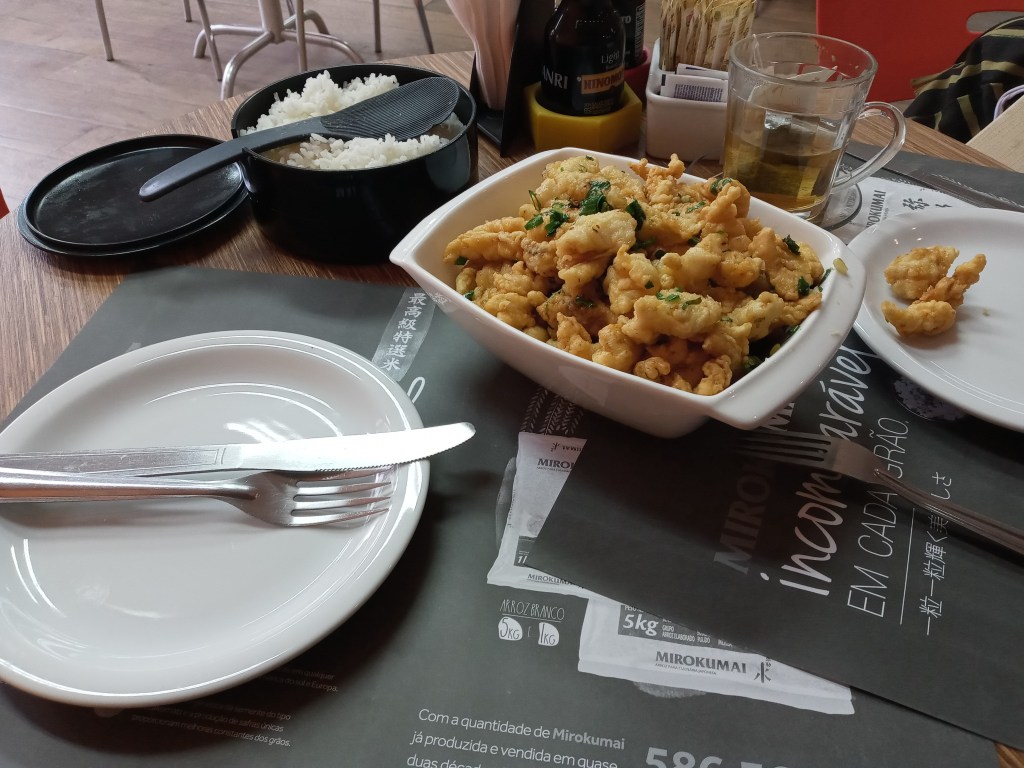 Når hun endelig kom tilbake bestilte vi mat på dette fine spisestedet. Asiatere er så høflige og respektfulle så vi bestilte et måltid pga vi følte oss så velkomne. Mat kunne de også lage. Den friterte fisken og risen med soya smakte utrolig godt. Måltidet kom på 77real og var helt klart verdt det.