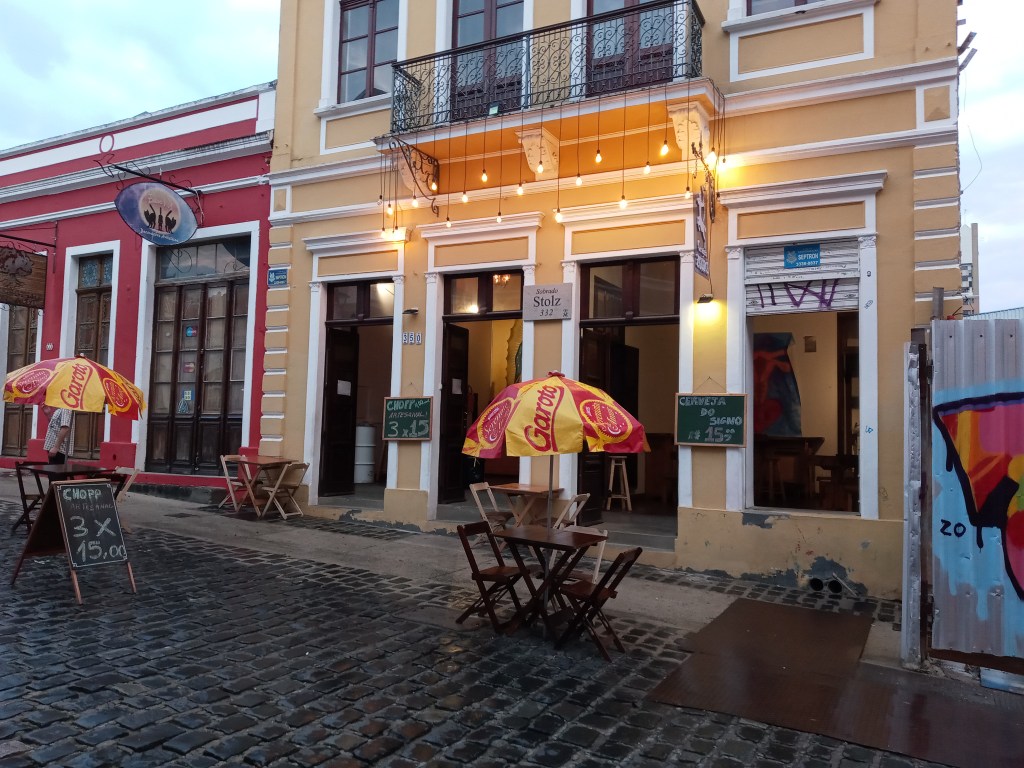 Det krydde av forskjellige gågater som jeg følte gikk i alle forskjellige vinkler, kriker og kroker. Mange stengte butikker, men det var noen flotte barer som solgte billig øl. Den ene spilte også Bob Dylan i akkurat passe lydstyrke, og når man i tillegg kunne kjøpe 3 choop for 15 real var det ekstra hardt å stå imot. Er man en viljesterk mann med vikingblod i seg fra kalde nord er man pent nødt til å si nei til alkohol noenganger, selv om du nesten kan sitte å drikke gratis på et flott sted i Curitiba.