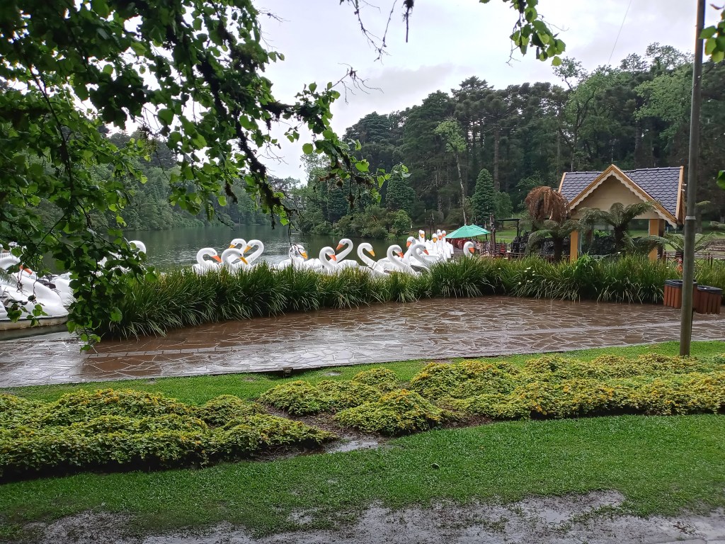 Planen var å finne Lago Negro. Et berømt vann som mange turister tar turen til. Vi gikk ikke så lenge etter gpsen før vi fant frem, men været var vi ikke heldige med. Det begynte å regne noe forferdelig, men det stoppet ikke oss fra å finne igjen stedet. Det var nok med trær å finne ly under på veien så vi kom frem tilslutt selv om vi brukte noe lengre tid. Vannet var vakkert og byggene rundt som solgte diverse saker og ting også. Man kunne leie tråkkebåt fordi som ville ta en tur på vannet, men båtene som var formet som svaner var parkert på land. Hvem vil på vannet i dette været?