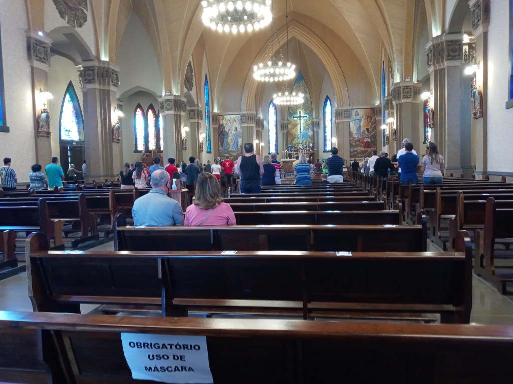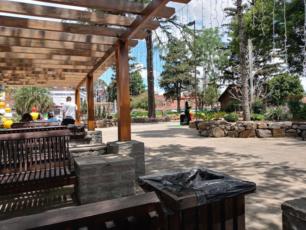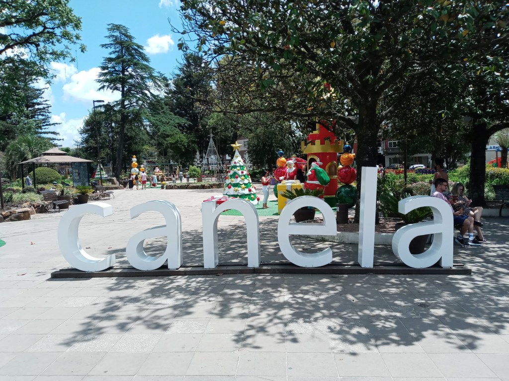 Vi våknet til flott vær, sol og blå himmel og denne dagen bestemte vi oss for å stikke til nabobyen til Gramado som heter Canela. Jeg og kona tok en god frokost på hotellet og tok en uber som plukket oss opp utenfor inngangsdøren som fraktet oss til nabobyen 10km unna. Vi besøkte først den flotte kirka som ligger midt i byen og den minte meg veldig om kirka jeg besøkte i Petropolis. Jeg stakk også innom, men jeg kom midt i en gudstjeneste så jeg ble ikke så lenge.