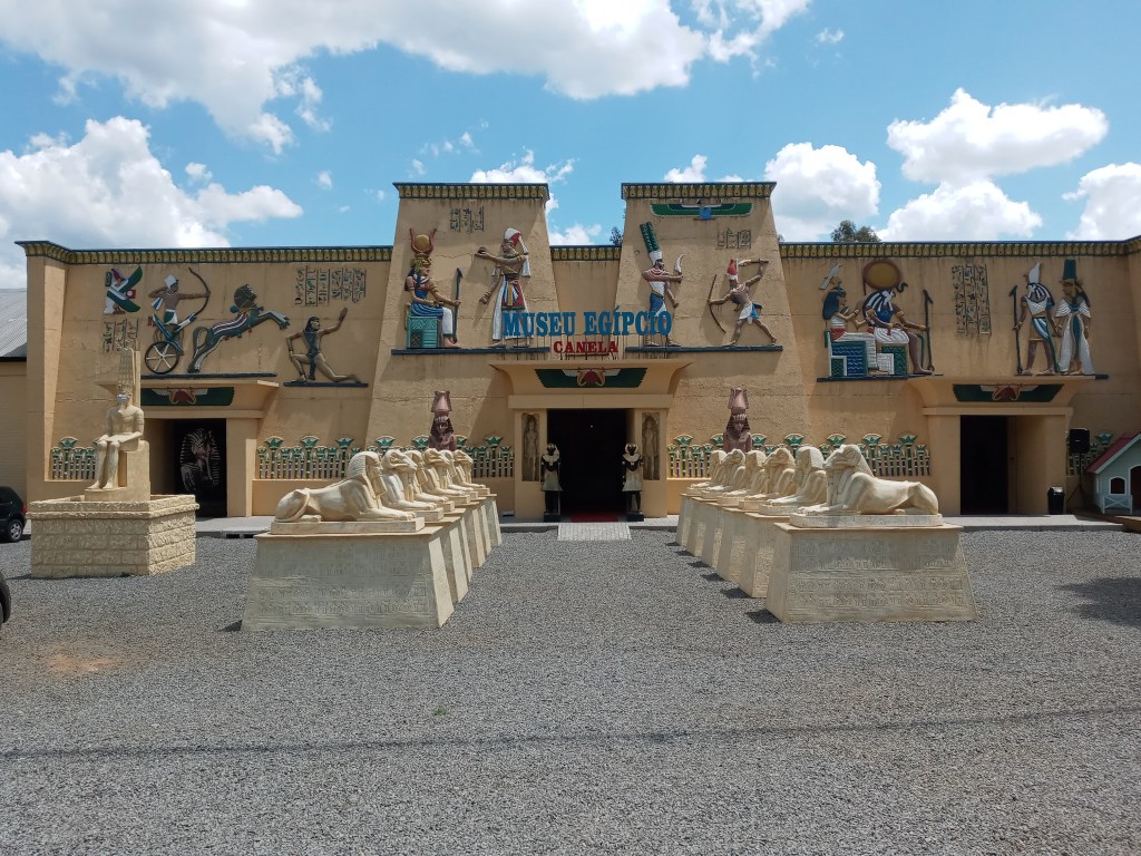 Byen har 40tusen innbyggere, men den virket mindre en Gramado, ihvertfall sentrum. Den er fortsatt utrolig sjarmerende og også denne byen har mye påvirkelse fra Tyskland. Arkitekten og de små sjokoladebutikkene er som hentet ut av Europa. Det er mange museer utenfor sentrum og vi bestemte oss for å besøkte et av dem. Vi tok en uber dit. Sjåføren var så snakkesalig og han sa at det ofte kom snø i denne byen på vinteren og det kunne ofte bli 2-3 minusgrader. Jeg skøyt inn å sa jeg er fra Norge. Det er sommertemperatur hos oss, til stor latter fra sjåføren. Sjåføren stoppet foran et egyptisk museum som så interessant ut.