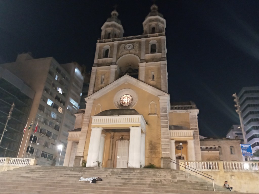 Vi hadde forvørig ikke noe mat igjen så vi tenkte å ta oss en matbit ute i denne flotte byen. Det var godt over 20 varmegrader denne kvelden så å spasere rundt her i t-skjorte og kortbukse er en herlig følelse. Når jeg og kona gikk ut gikk vi forbi den flotte kirka som pyntet opp området med sitt majestetiske utseende, selv på kveldstid. Problemet var alle de uteliggerne som hadde samlet seg rundt omkring den så det ble en litt uhyggelig stemning. Vi bestemte oss for og fort gå videre for å finne et sted som var oppe, men det meste var stengt pga korona.