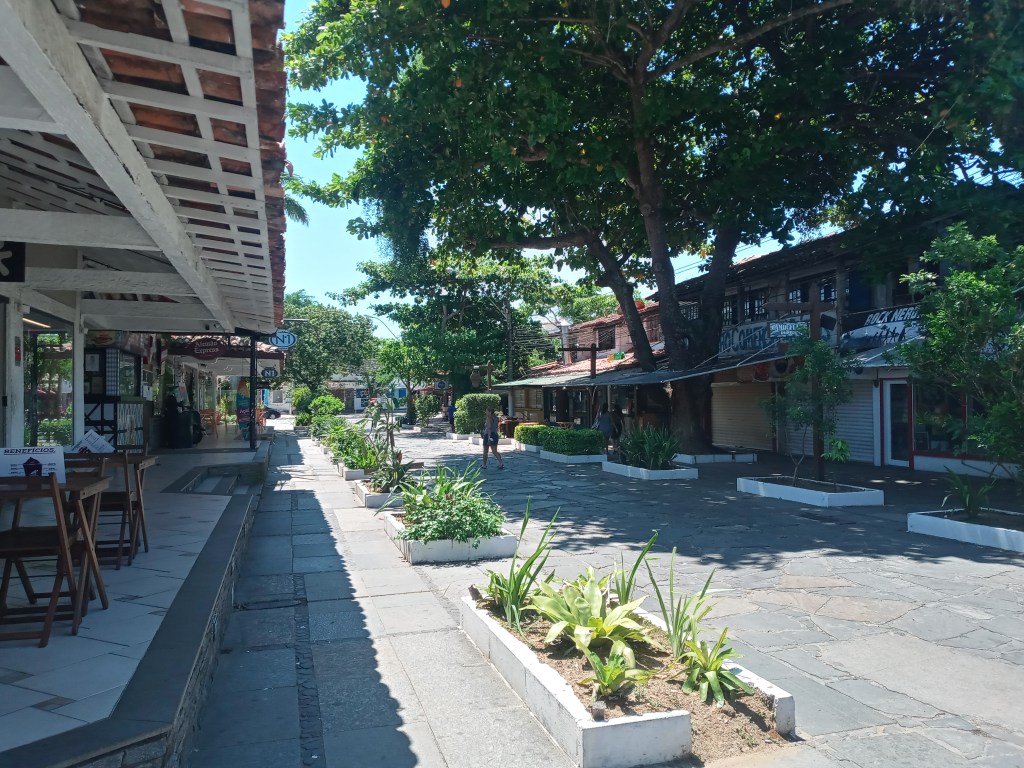Etter en stund på stranden ble det fryktelig varmt. Det lå på bortimot 30varmegrader i sola. Ganske varmt til denne årstiden å være. Det er tross alt vinter her nå. Jeg gikk til selve parken i Buzios sentrum for å kjøpe noe avkjølende drikke. Det ble kun vann selv om det var Fredag. Fellesparken man kan sitte i var tydeligvis under renovering. Alle benkene var fjernet. Planen var å slappe av der en stund, men det ble det ikke noe av. Parkens navn er Praça Santos Dumont, og er et flott sted til vanlig. Jeg får ta turen tilbake når stedet er ferdig pyntet opp.
