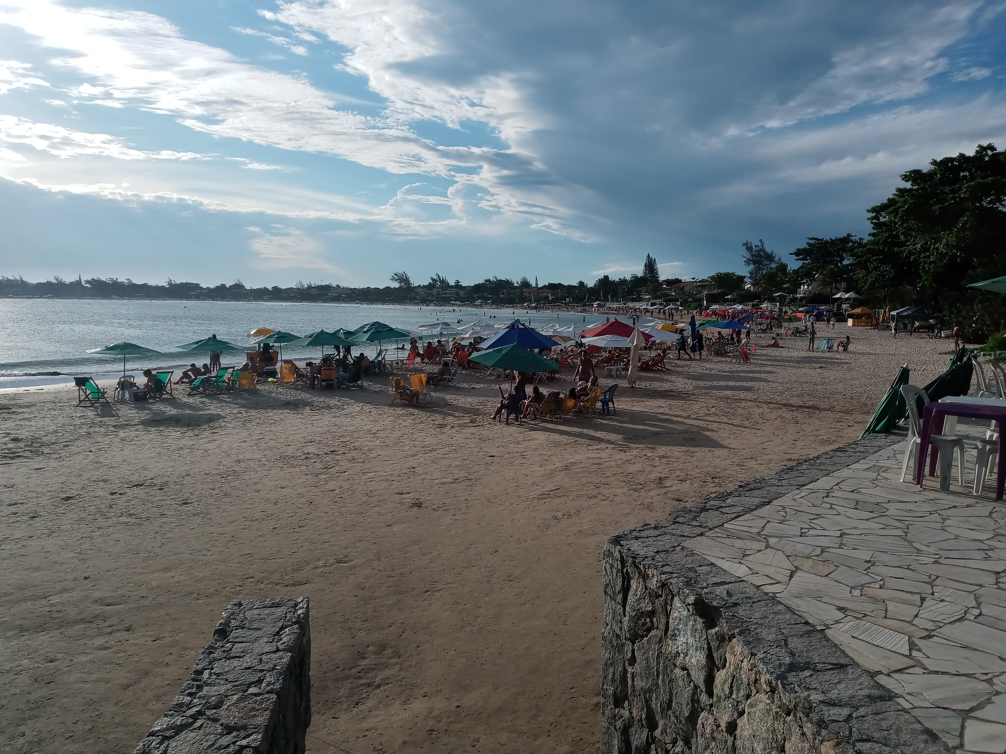 Finne en parkering var noe verre. Selv om det begynte å bli sent på dagen var det utrolig mange folk der. Dette er nok et populært sted. Jeg kunne selvfølgelig betale 20 reais for en parkeringsplass, men det kommer ikke på tale. Jeg dro et stykke unna og fant en parkering etter veien. Jeg var litt usikker om det var lov til å sette fra seg bilen der, men noen sjanser må man bare ta. Hva gjør man ikke for å spare inn en parkeringsbillet. Jeg satte fra meg bilen og gikk til stranden som var mye større enn jeg husker.
