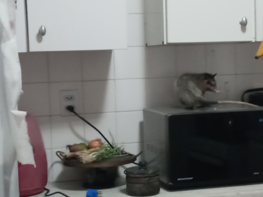 Jeg våknet litt vel tidlig første dag i Saquerema. Var behagelig å våkne til lyden av bølgene til havet. Jeg tror ikke det er så mange som har opplevd å våkne til denne vakre utsikten noengang. Havet og stranden ligger rett utenfor soverommet og jeg var tidlig ute for å ta et morgensbilde. Skrapelydene som kom fra taket derimot i løpet av natten kunne jeg ha klart meg foruten. Hva slags dyr som lagde lydene vet jeg ikke, men jeg tipper det var en gamba. Det dukket en på kjøkkenet igår kveld når jeg og kona skulle ta kveldsmaten. En frekk mattyv jeg fikk tatt bildet av. Jeg var ikke lengre en 2m unna den før den pilte avgårde. Disse krabatene sniker seg ofte inn i hagen min og stjeler frukten på trærne mine der jeg bor til vanlig så jeg dro kjensel på dyret med engang.