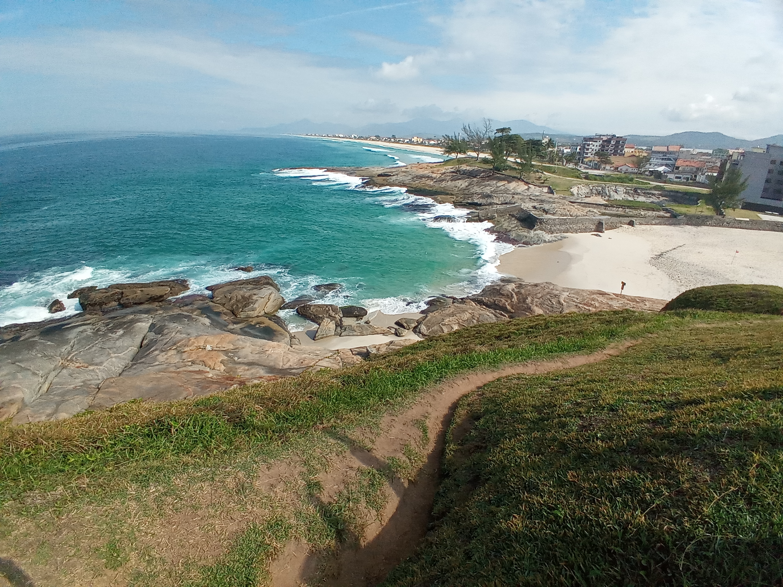Når kona endelig våknet og kaffen på gjestgiveriet var inntatt, startet vi morgenen med en tidlig strandpromenad. Det var utrolig mange forlatte hus etter strandveien og de som folk bodde i trengte vedlikehold. Hus som ligger helt inntil havet blir slitt fort pga salt i lufta og sterk sol. Naturen var det ingenting å si på. Stranden som het Praia da Vila ledet oss til sentrum som lå ca 1.5km unna sovestedet. En grei spasertur en tidlig morgen. Når vi kom frem var det å finne et sted å innta dagens første måltid. Vi fant et koselig bakeri som var oppe, og det ble brasiliansk toast på meg, også kalt pao na chapa. En frokost jeg ofte spiser på morgenen. Sist gang jeg var i denne byen på en liten dagstur besøkte jeg kirka som lå i sentrum, men da var ikke kirka oppe.