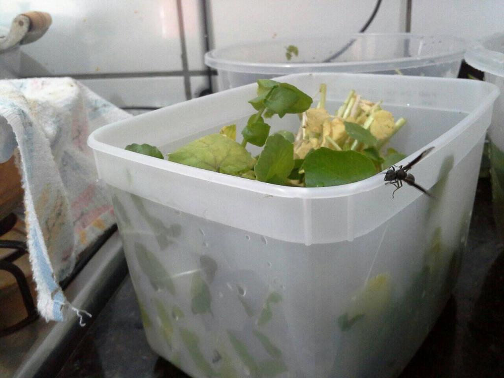 Salatbladene dynker vi i klorvann og man må sjekke alle bladene for insekter først. Jeg tror Brasil er ganske gjerrige på sprøytemidler for det dukker opp det ene salatspisende insektet etter det andre når man renser disse bladene. Bedre å få de av før de ender opp i magen. I Brasil så er det normalt å ta en menneskelig mark kur engang i året for å fjerne eventuelle mark man kan ha voksende i magesekken. Medisinene koster ikke så mye, men husker ikke prisen. Det er en stund siden sist jeg gikk på en sånn kur og jeg burde vel stikke på nærmeste apotek snart og kjøpe disse pillene før jeg setter meg på toalettet og serverer mark i doskåla. Ekkelt å tenke på.