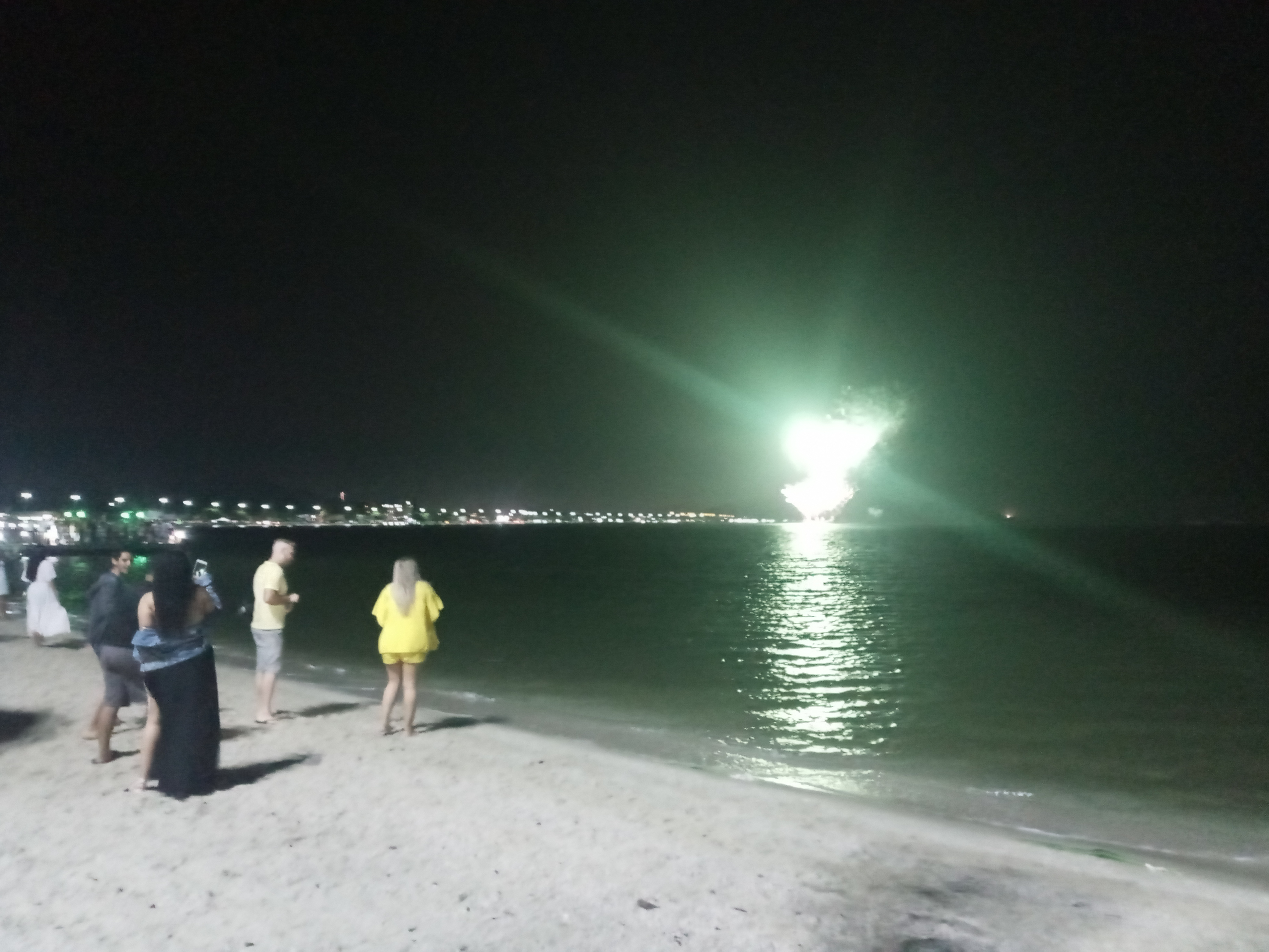 Det finnes en enorm lagun i Iguaba, der det ligger nok med strender man kan benke seg til. Og det var der det meste av fyrverkeriet skjedde også. Jeg har en merkelig døgnrytme der jeg legger meg veldig tidlig, noe jeg gjorde denne dagen også. Heldigvis hadde jeg alarmen som begynte å ringe ved 23.00 tiden. Akkurat nok tid til å stikke og få med selg selve feiringen ved midnatt. Kona som også våknet av samme alarm bestemte seg for og heller sove videre, og jeg måtte pent ta turen alene. Helt greit. Jeg klarer å kose meg i eget selskap også. Jeg gikk ned til det store vannet i sentrum alene, i mørket og regnet bare fortsatte. Det var fortsatt varmt mitt på natten. Short og t-skjorte holdt i massevis.