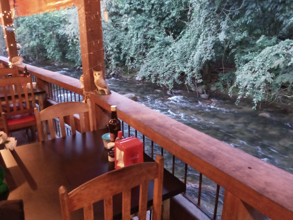 Fikk et mattips av mannen i resepsjonen og han rådet oss til å reise litt utenfor sentrum for en matbit. Det var Søndag og det meste var stengt i byen. Vi tok bilen og dro litt utenfor og stedet var vakkert. Flotte fjell og en elv som rant ved siden av den ene restauranten. Jeg følte meg raskt hjemme på dette stedet. Jeg elsker naturen på fjellet.