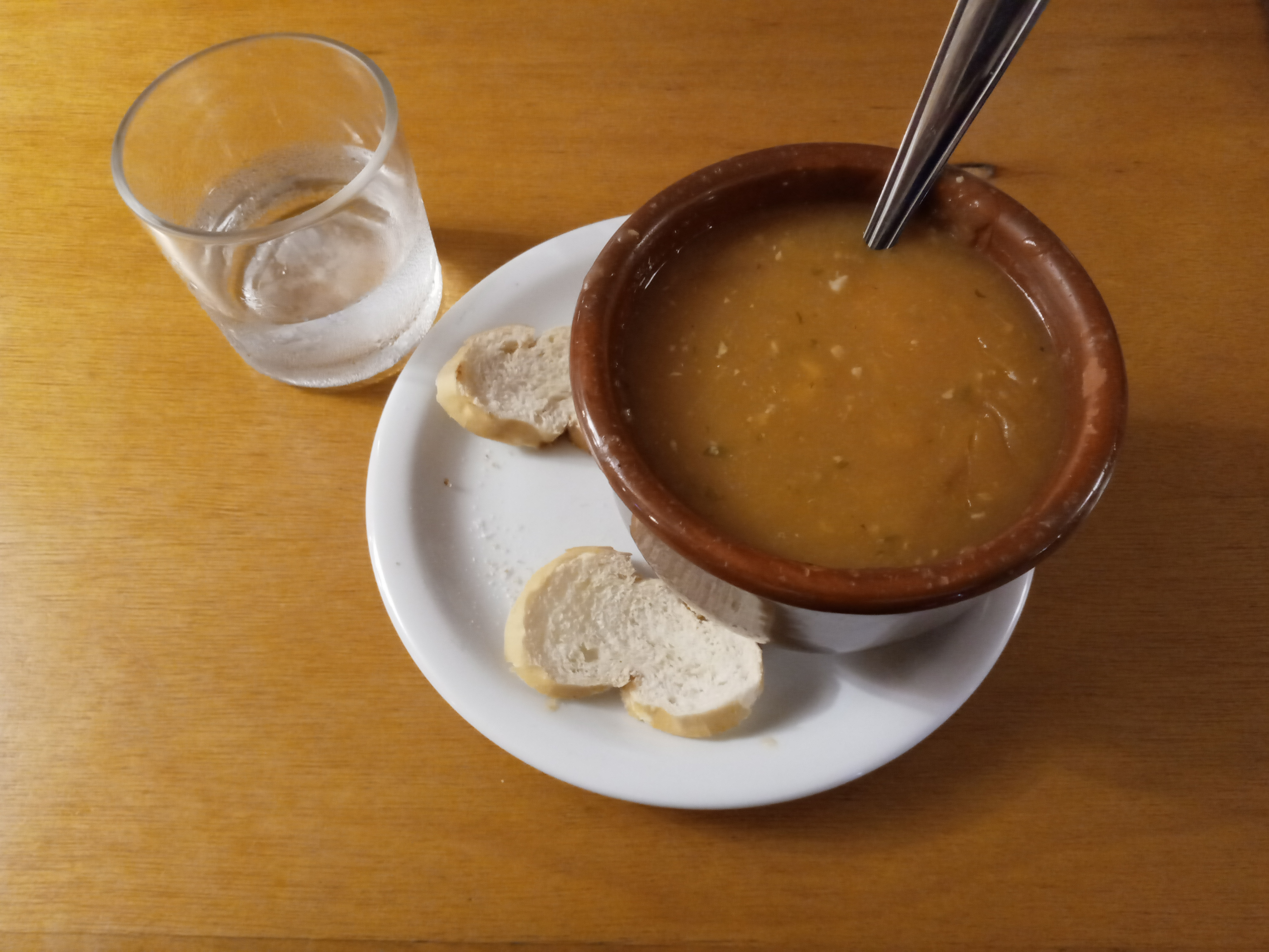 Kona var ikke imponert. Hun synes elva var flott, men prisene altfor høye. Vi kjøpte mat ved et spisested ved siden av. Vi bestilte begge en varm suppe med reker for å få tilbake varmen i kroppen. Rekene var det ikke mange av. Sørgelige greier og vi måtte vente en evighet på maten også. Man måtte i tillegg smøre seg med tålmodighet for å få regningen. Vi la ikke igjen noe tips på dette stedet. Beliggenheten var flott. Herlig natur, men selve middagen kunne vi nok spart oss for.