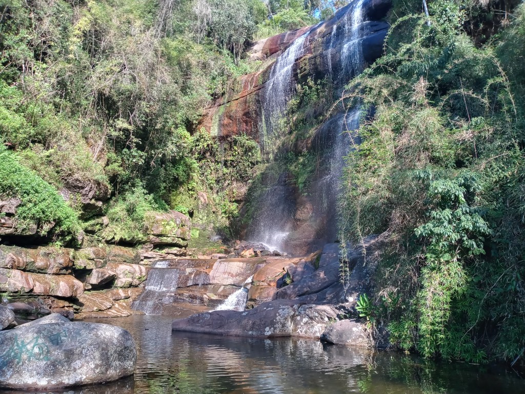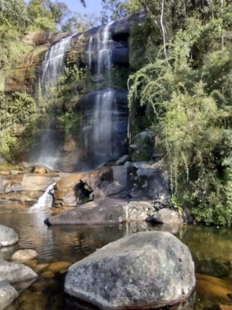 Vi hadde ikke peiling på hva det var folk gjorde der, men vi stoppet bilen og fulgte stien innover skogen. Der inne kom vi frem til fossen Cachoeira da Macumba. Fossen paret som stoppet oss trengte veibeskrivelse for å finne. Vi møtte de på stedet også, så de fant tydeligvis frem til stedet tilslutt.