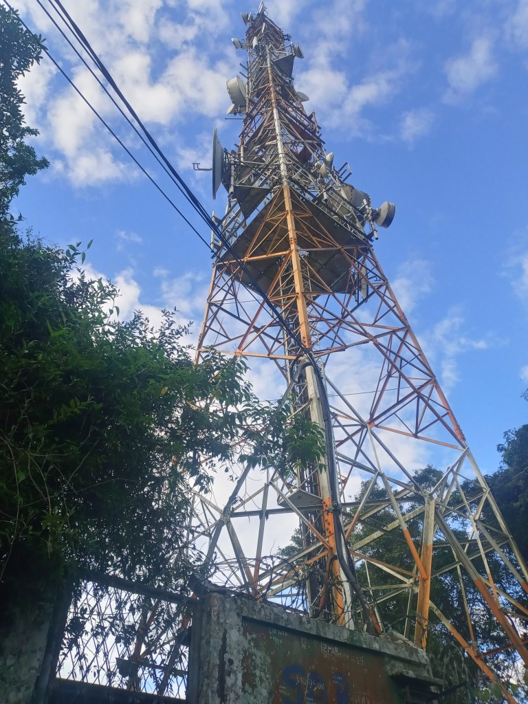 Den tankegangen reddet meg denne gangen også. Vi kom oss til topps der veien slutter. På toppen på fjellet er det satt opp høye satelittårn. Mye av området var avstengt, men vi gikk litt rundt der for å titte litt. Jeg vet ikke hva slags signaler tårnene gir fra seg, men så lenge jeg har mobildekning og fungerende internett er jeg takknemlig og fornøyd.