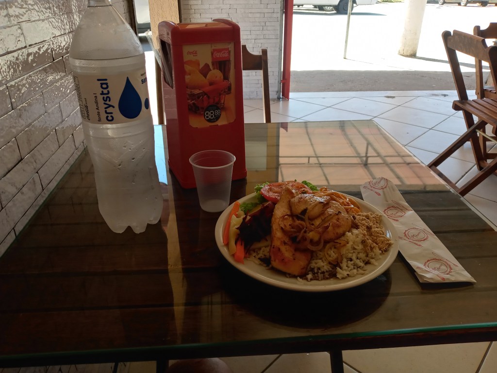 Etter treningen var det tid for mat. Endte opp på et sjarmerende sted som fylte tallerkenene til randen med mat for kun 11 reais. Det er billig å spise godt i denne byen. Det var så hyggelig betjening der også. Jeg kommer nok til å spise flere ganger der.