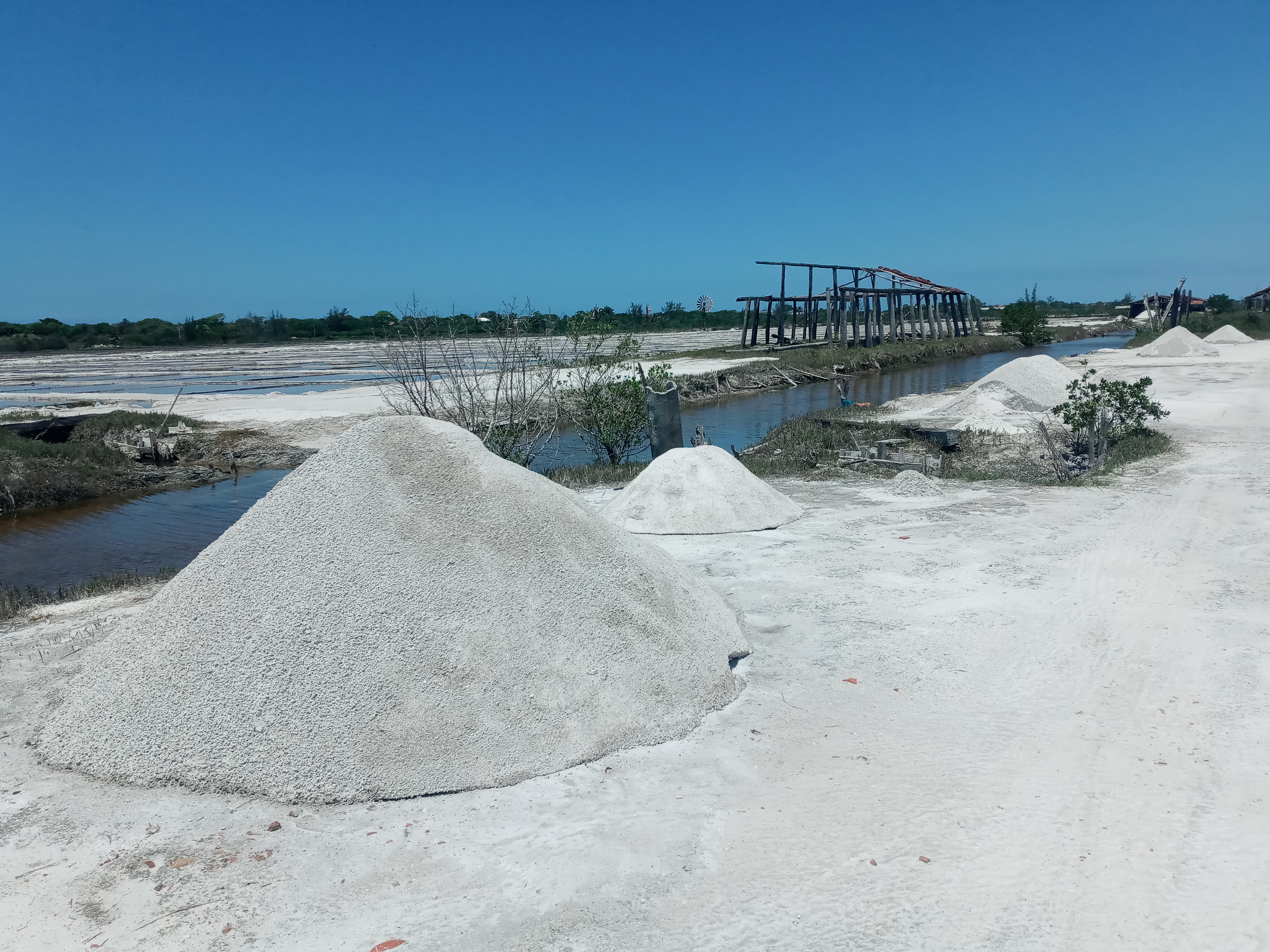 Vi dro fra Iguaba, byen vi bor i, og reiste etter veien som går rundt det store vannet Lagua de Araruama. Det ligger flere byer etter lagunen og det er også mange steder som utvinner salt. Vi må bare finne de. Når vi dro etter veien så jeg folk som solgte salt også, i svære poser. Jeg sjekka ikke prisen. Hvor mye billigere det var å kjøpe etter veien enn i butikken vet jeg ikke. Men med tanke på størrelsen på posen var sikkert kilosprisen lav. Denne type salt skal være sunnere også. Litt dumt jeg ikke kjøpte noe.