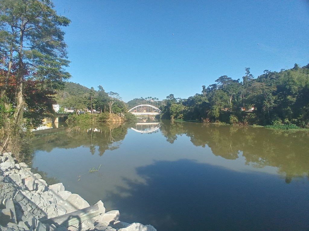 Jeg klagde jo litt på hotellprisene i byen. Grunnen til de høye prisene var pga en motorsykkelfestival som foregikk i Pirai. Jeg har gått forbi noen skjeggete tatoverte bikere siden jeg kom hit. Jeg ble ikke noe redd eller urolig av den grunn. Snarere tvert imot. Jeg ble litt misunnelig. Jeg kan ikke legge an til skjegg pga elendig hårvekst. Jeg har heller ingen motorsykkel, men vi bestemte oss for å ta en tur til festivalen. Den lå et godt stykke unna sentrum. Det går ei vakker elv gjennom byen. Vi fulgte den og elva ledet oss til festivalområdet.