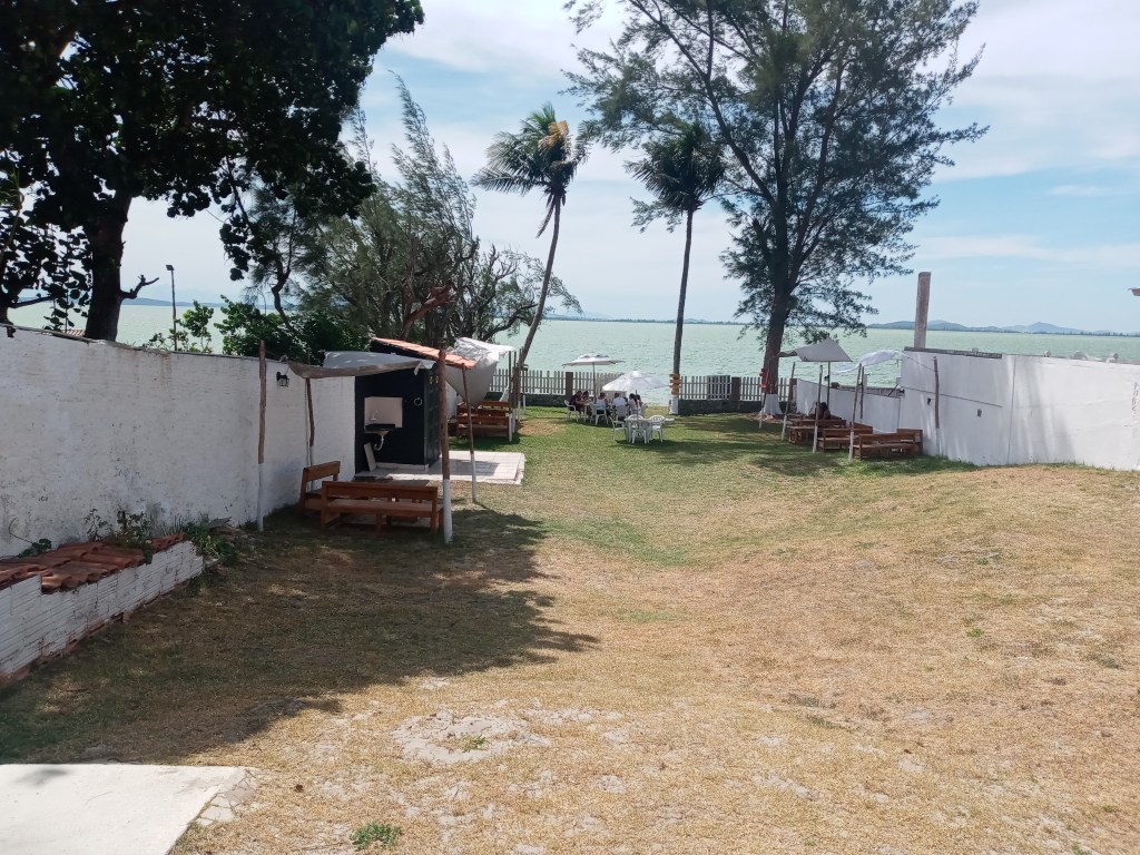 Da var vannet adskillig varmere i lagunen som lå en kort gange unna. Vi fant et matsted for å innta dagens middag, og før maten kom på bordet, som føltes som en evighet rakk vi å ta en dukkert mens vi ventet. Problemet er saltinnholdet som gjør at det svir i øynene, men vannet er alltid varmt i lagoa de Araruama. Man kan selvfølgelig bare vasse uti å nekte og dykke hodet under, men da telles det ikke som et bad i boka mi. Totalt utelukka. Jeg dykker alltid under så får man leve med litt svie i øynene en kort periode etterpå.