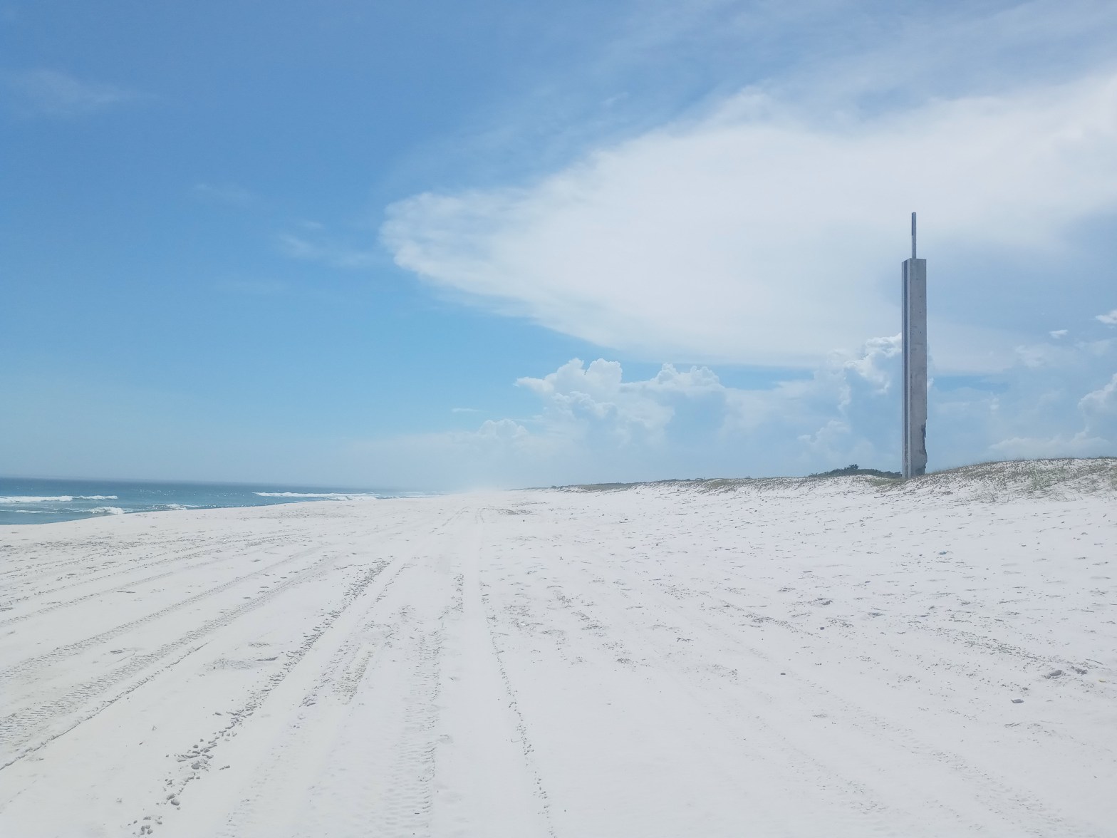 Stranden var imponerende. Krittvitt sand og litt for høye bølger. Det var satt opp varselskilt at bading var på eget ansvar og det var ingen livreddere i området. Sanden var glovarm og gå på og det var 500meter jeg måtte gå til landemerket. Skuffende greier. Dette var ikke en imponerende turistattraksjon. Jeg skjønte heller ikke helt hva det egentlig var. En lang betongstolpe på stranden. Ikke noe skilt, eller forklaring på hva dette skulle være. Jeg fant heller ikke noe på internett. Kanskje det var et tidligere gammelt fyrtårn? Jeg fikk ikke stått og tenkt så lenge. Den varme hvite stranden brant føttene mine og jeg måtte skynde meg for å avkjøle de i havet. Jeg hadde rett. Vannet var bikkjekaldt. Jeg og kona brukte dagen her og det ble mange avkjølende bad. Stranden var skummel og bade i. Sterk understrøm og høye bølger. Jeg gikk selvfølgelig ikke langt uti.